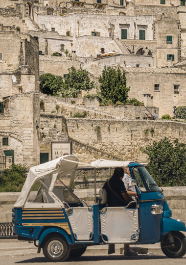 La tua avventura proseguirà a bordo di un Ape Calessino che ti porterà a esplorare la città da una prospettiva panoramica per godere di viste mozzafiato sui monumenti e sui paesaggi circostanti.