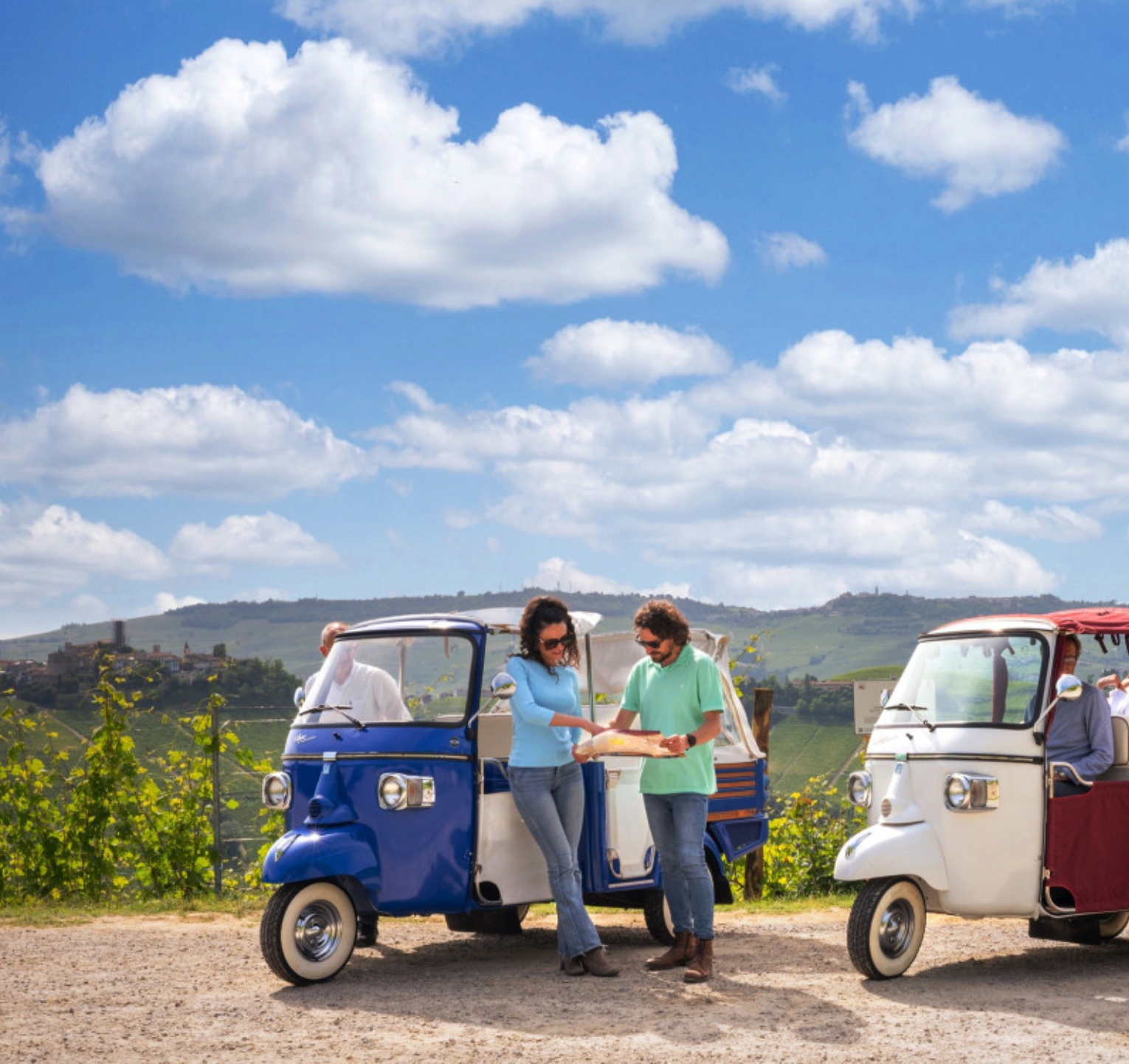 Parti a bordo di un Ape Calessino per un itinerario da sogno nel cuore delle Langhe, tra paesaggi mozzafiato, vigneti e borghi pittoreschi.