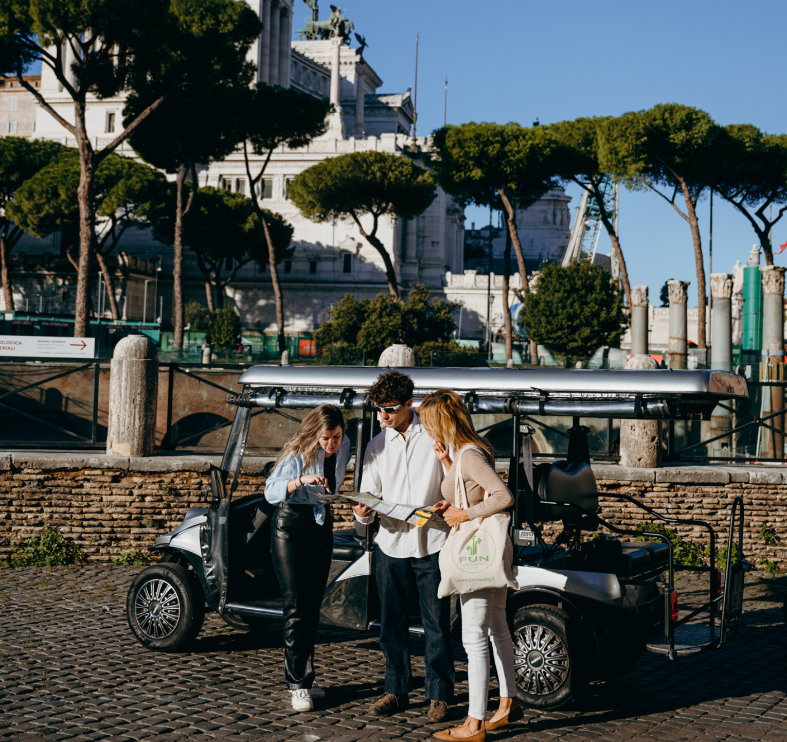 Scopri i luoghi nascosti di Roma con un affascinante tour in golf cart elettrico.