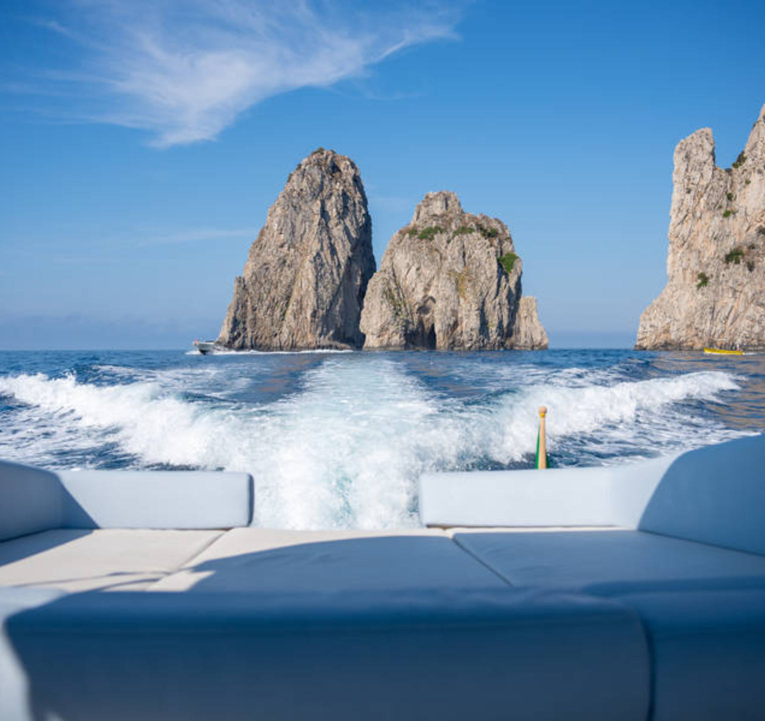 Durante la navigazione raggiungerai i maestosi Faraglioni, che al tramonto offrono uno scenario davvero speciale. A bordo ti attende un aperitivo con prodotti tipici campani, ideale per accompagnare la tua esperienza in totale relax.